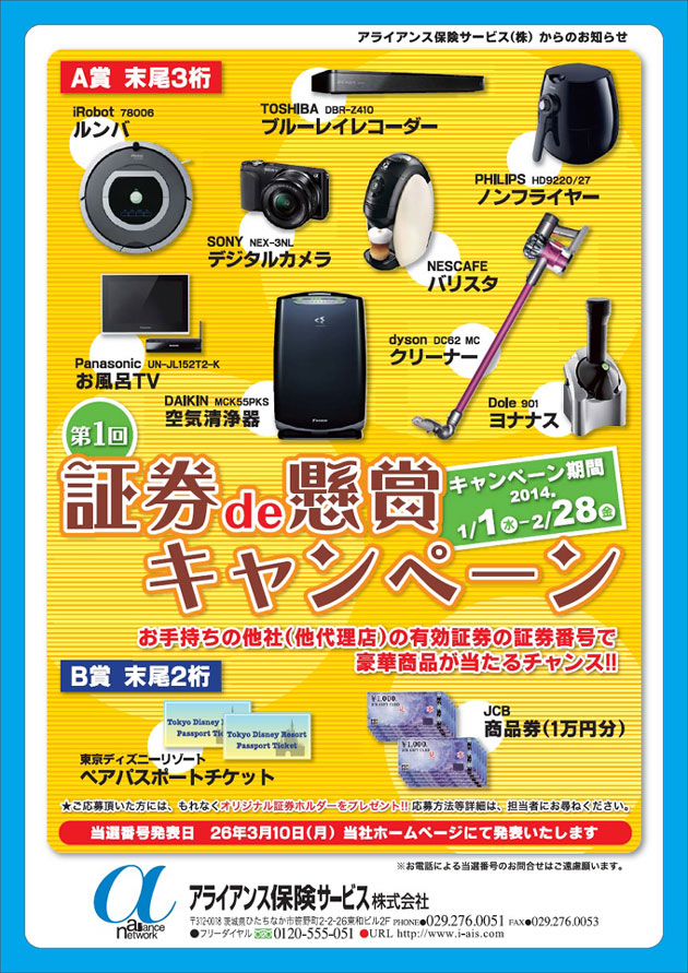 尚、キャンペーンにご参加下さった方々へ証券フォルダーをお届に伺います。ご参加ありがとうございました。